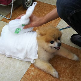 するとSさんが濡れタオルを持ってポン太の元へ。